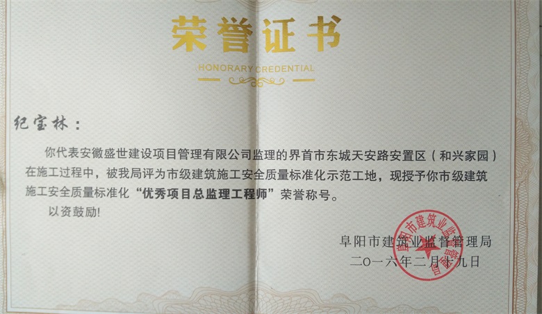 阜阳市级标化工地及纪总优秀总监
