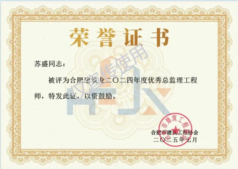 恭喜我公司荣获2024年度合肥市建筑工程协会“优秀监理企业”称号