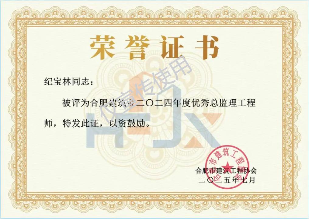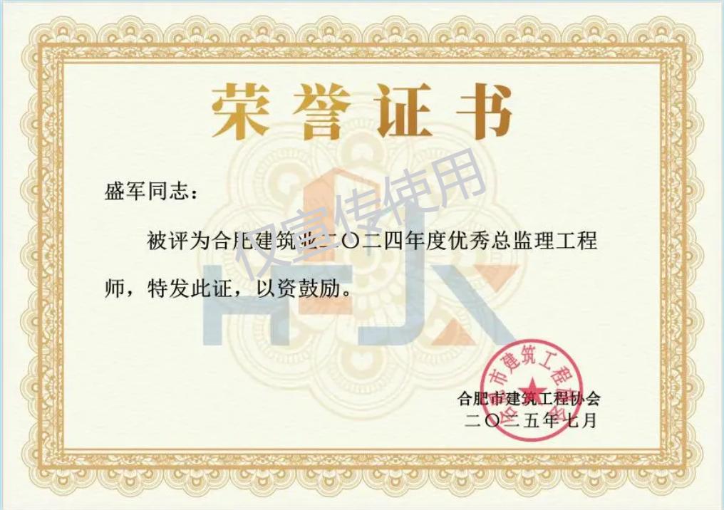 2024年度合肥市建筑工程协会“优秀监理企业”“优秀总监工程师”